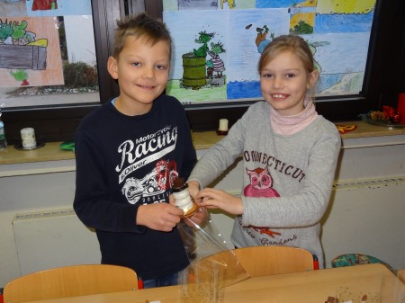 Schluss tupften wir aus Schokoglasur zwei Augen und vier Knöpfe