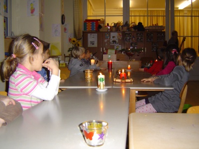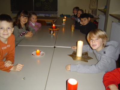 In der ersten Stunde machten wir unsere Kerzen an.