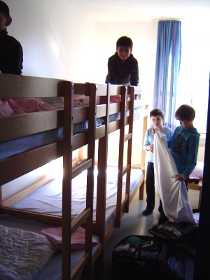 Dort begrüßte uns die Leiterin. Sie erklärte uns die Hausregeln und stellte uns unseren Referenten vor. Danach bezogen wir die Zimmer. Unsere Betten mussten wir alleine machen. Zum Glück hat sich beim Betten beziehen keiner die Finger gebrochen. |