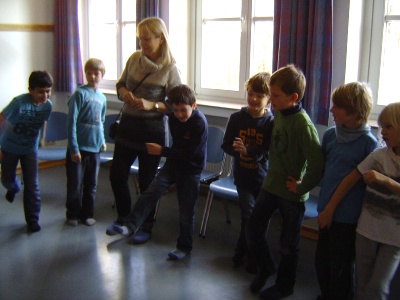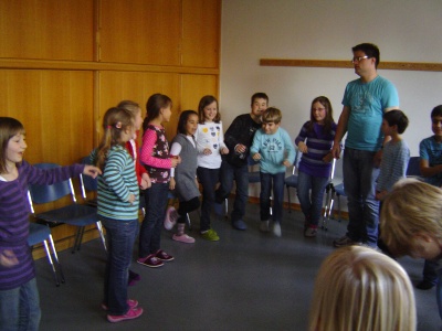 Um 14 Uhr trafen wir uns zum ersten Mal zur Gruppenstunde. Unser Referent hieß David. Er spielte mit uns lustige Spiele. |