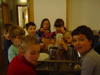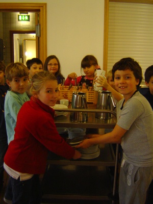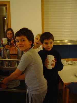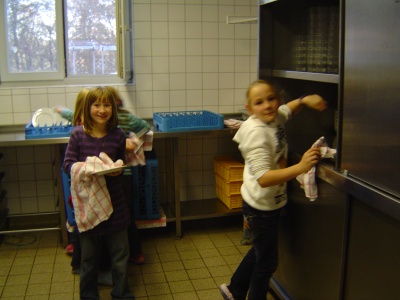Weil einige Kinder noch nicht alle Sachen in den Schränken verstaut hatten, räumten wir weiter unsere Zimmer auf. Wir halfen uns gegenseitig. |