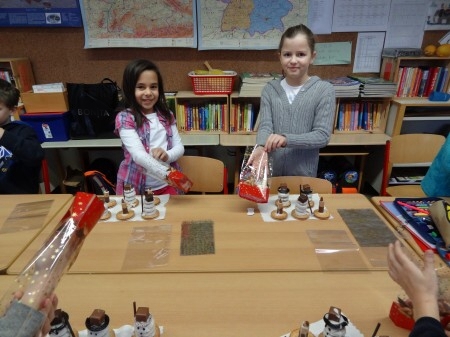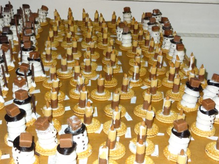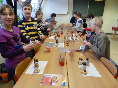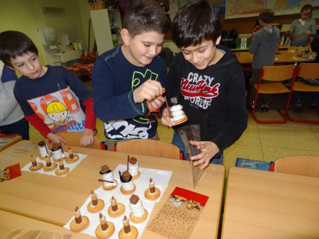 Schluss tupften wir aus Schokoglasur zwei Augen und vier Knöpfe