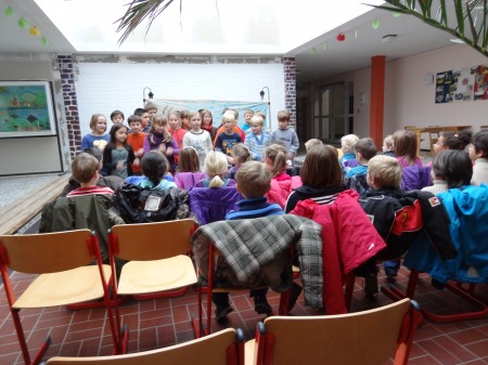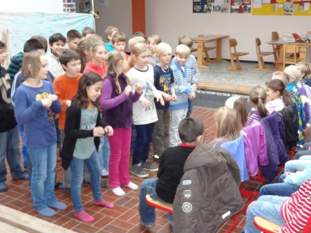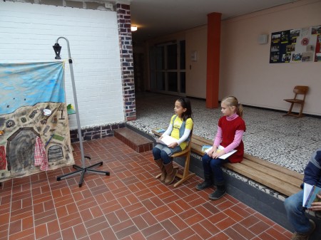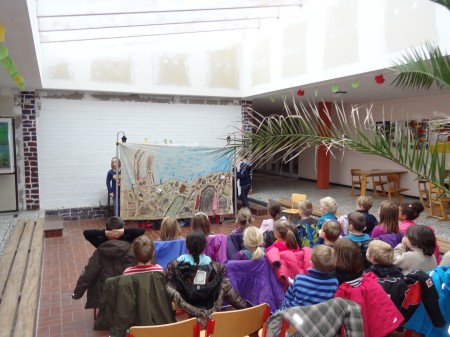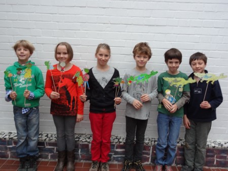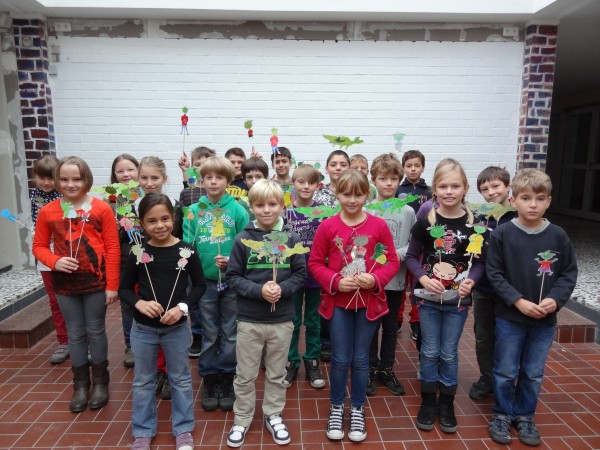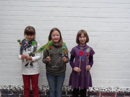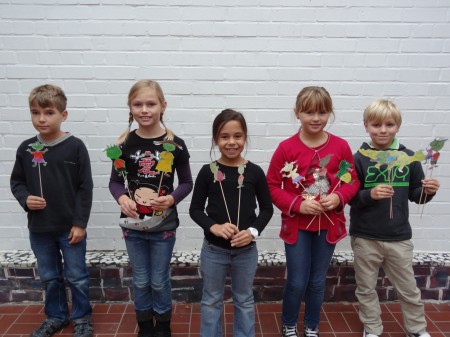 der Klasse waren an dem Stabpuppenspiel beteiligt.
