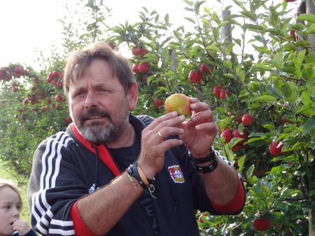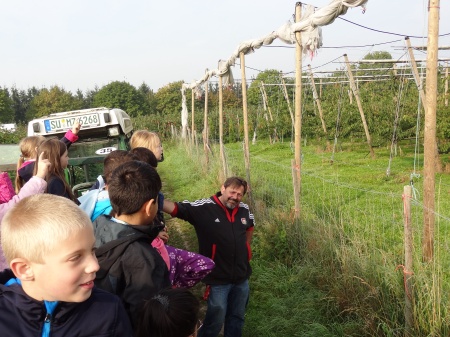 In der Apfelplantage erzählte Obstbauer Felten uns spannende und interessante Dinge über die Äpfel. |