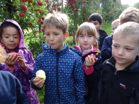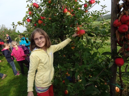 Jedes Kind durfte sich auch noch Äpfel zum Mitnehmen pflücken. |