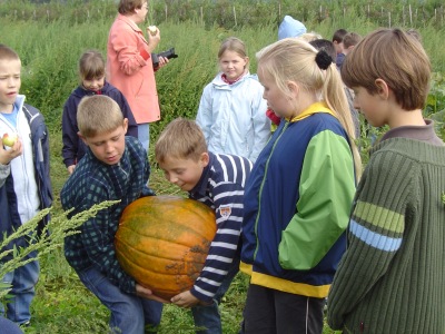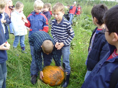 mit uns zu einem Kürbisfeld. Da sahen wir viele dicke große