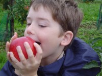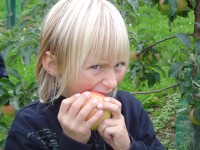 Nun durften sich alle Kinder einen schönen roten Apfel von den Bäumen