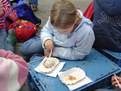 Wir ließen uns jetzt alle auf den Obstkisten nieder und verspeisten