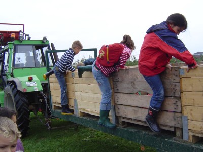 wieder in den Anhänger und fuhren zurück zum Obsthof.