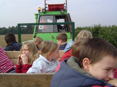 fuhr Herr Felten die gesamte Klasse mit dem Traktor durch seine Apfelplantagen.