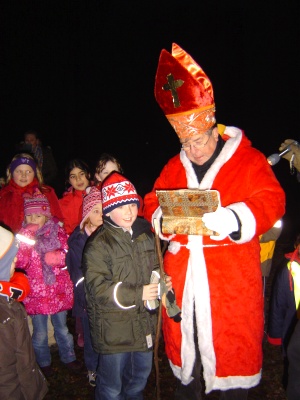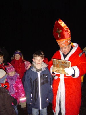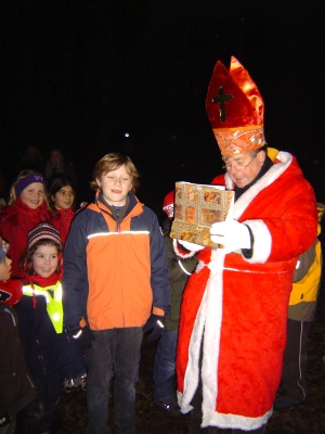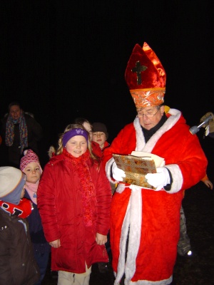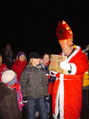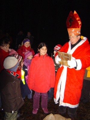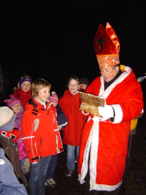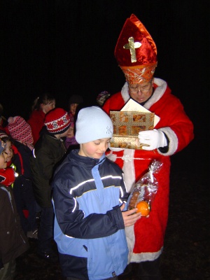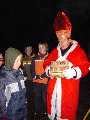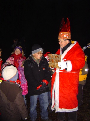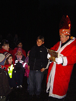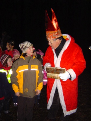 war es wirklich. Aus der Dunkelheit trat er auf uns zu. Der Nikolaus