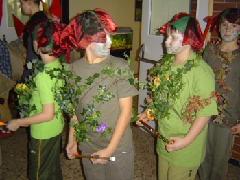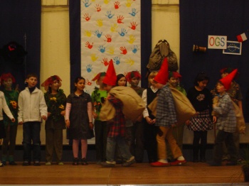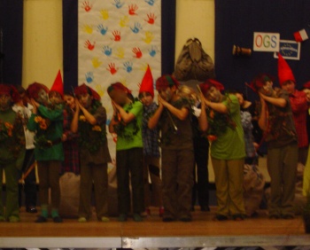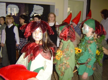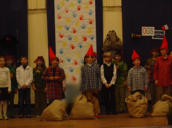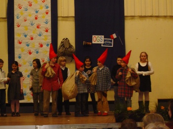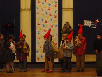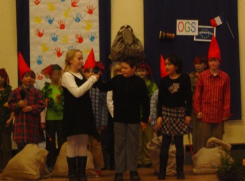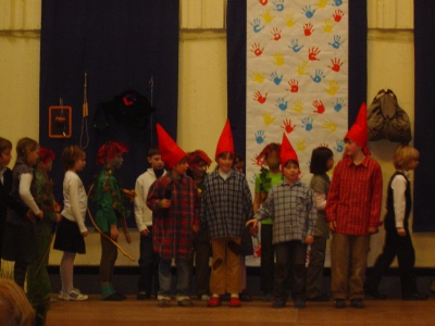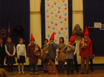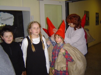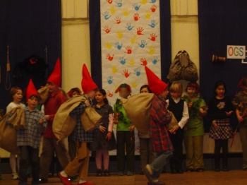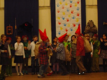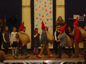 Aufführung schleppten die Zwerge riesige Säcke