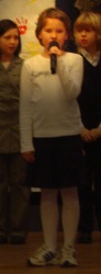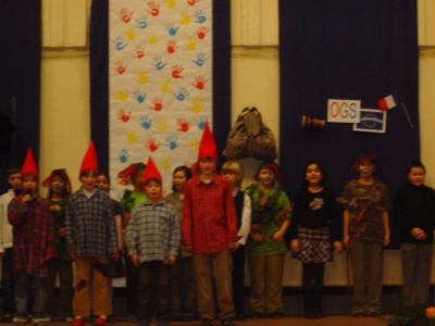 alle Kinder der Klasse 4d auf der Bühne. |