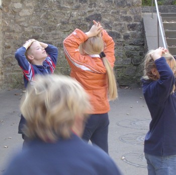 startete unsere Burgrallye auf dem Sportplatz, der direkt