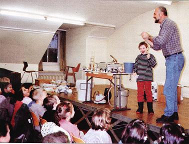 Text:Katharina Göttlicher, Marvin Abel und Dominik Blitsch Alle Kinder unserer Klasse schauten dem Glasbläser zu. Er hat einen Glasluftballon aufgeblasen und platzen lassen. Dominik durfte auf die Bühne. Er hat von einem Scherz-Schwan Wasser ins Gesicht gespritzt bekommen. Da haben alle Kinder gelacht. Dominik hat am meisten gelacht. (Dezember 2001) Foto: Copyright 2001 Meckenheimer Stadtzeitung |