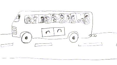 Wir spielten Fangen und warteten auf den Bus. Als der kam, fuhren